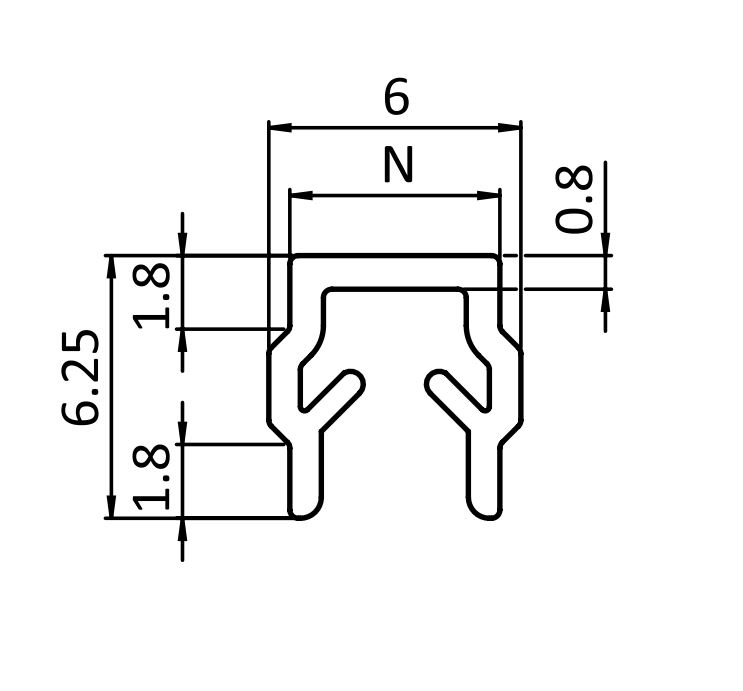 Horonytakaró és üvegbefogó profil, PP, horony 5 (2-3 mm-es plexi vagy üveg befogására) (1db=2m)