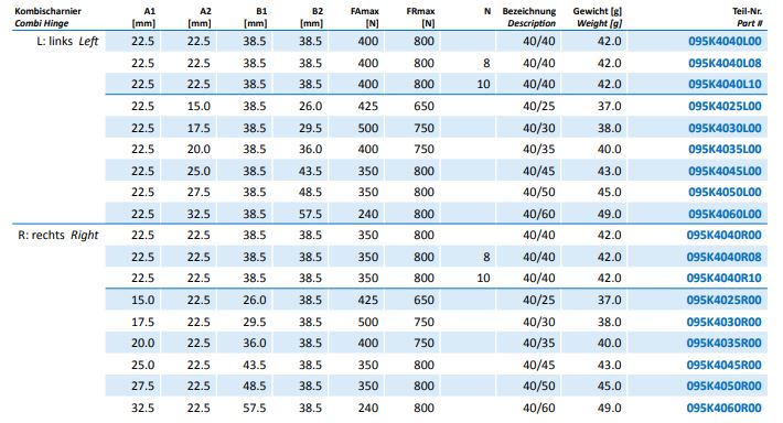 Poliamid zsanér40-es, Nut8, szétszerelhető, jobbos