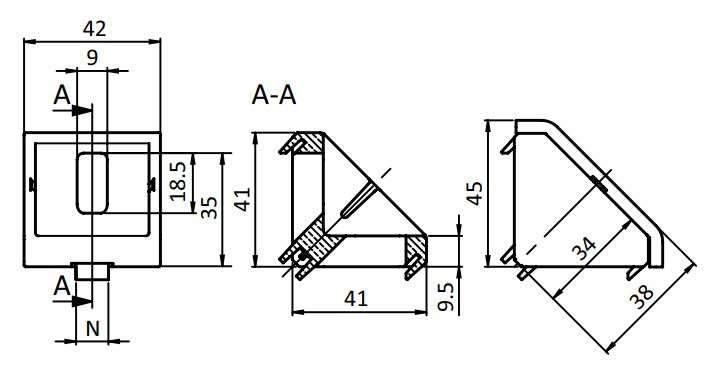 Sarokelem 45-ös, Nut 8, préselt alumínium ötvözet
